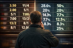 When someone says ‘what are the odds of that happening’ they are talking about the true odds, as in the real world chances. The things is bookies odds are not true odds because by default they build in a profit margin for the bookie. This section helps you understand how odds work and whether the odds you are given are good or not.